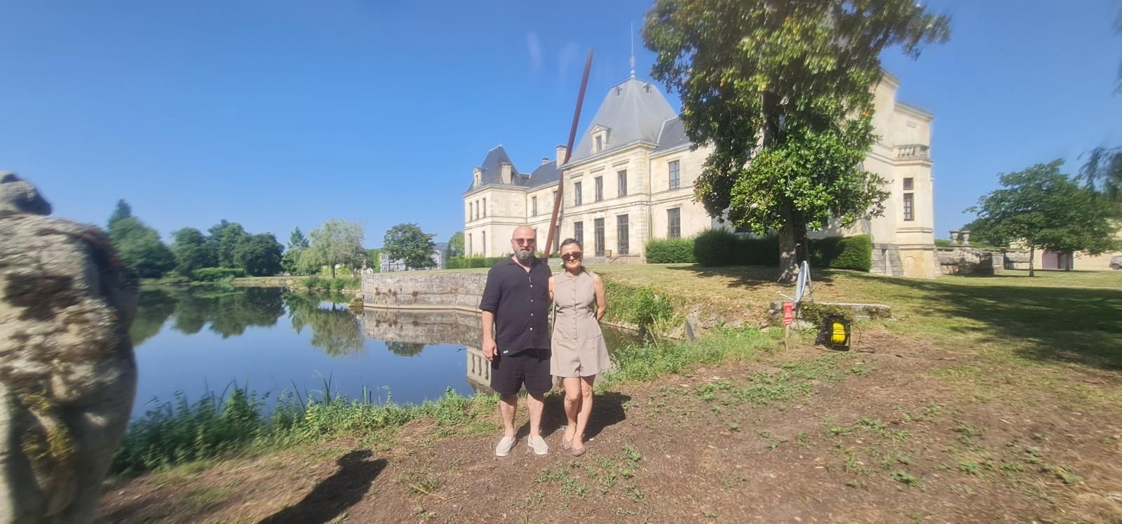 Ze kwamen naar ons toe en vroegen vriendelijk of we misschien een foto wilden maken bij het château. We raakten even aan de praat. Ze vertelden dat ze bezig waren met opnames voor een project en dat het die dag wat drukker was dan normaal.